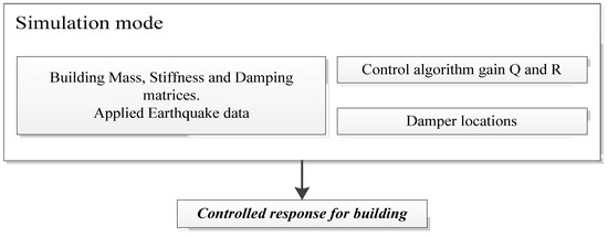 The simulation mode is presented in Figure 6. The resulting control gain, damper location, and building parameters are combined with a new earthquake and produce the corresponding controlled response.