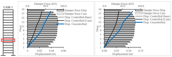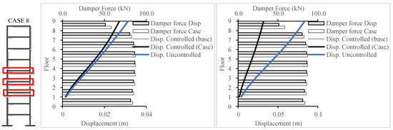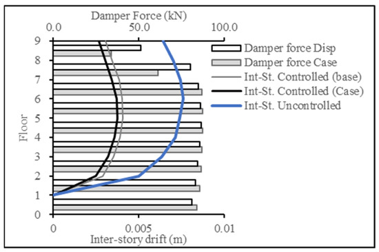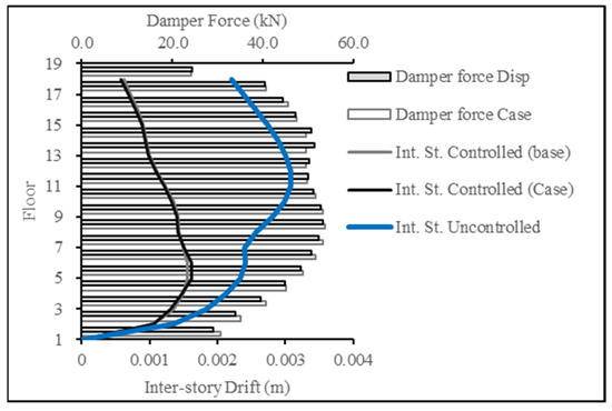 For Figure 20 and Figure 21, the target response type was changed to inter-story drift and compared to the inter-story drift resulting from the base case (displacement case). The results showcase the success in producing a lower inter-story drift response, thereby achieving the targeted results.