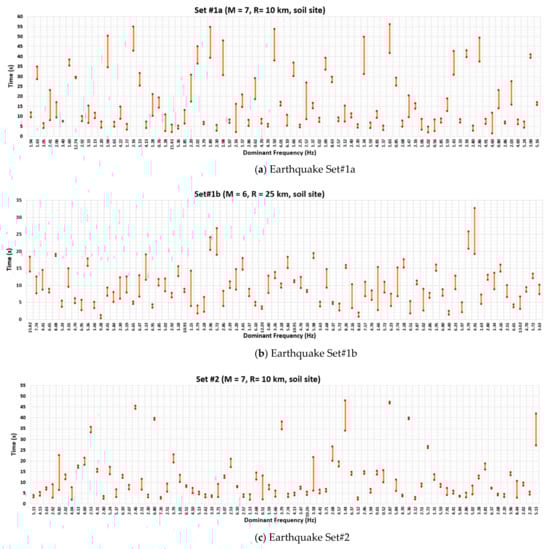 Summary of frequencies and time durations for the three earthquake sets.
