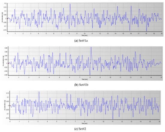 In addition, the choice of an appropriate time duration for each of the artificial excitations was also given due consideration. For a linearly elastic system, the value used for the time duration can be arbitrary as it does not have any significant effect on the results. This is because a scale factor can be used to scale the accelerogram to reach a spectral acceleration Sa (or spectral displacement Sd) value that matches the required target level at any desired time. However, for systems that exhibit nonlinearity, the selection of the proper time duration is important. If the time duration is set too low, the structure may not have sufficient time to go through a reasonable number of nonlinear cycles and experience all pertinent excitation frequencies. On the other hand, if the time duration is set too high, the number of cycles will become unrealistically high. In the present work, the time durations for artificial excitation Set#1a, Set#1b and Set#2 were set at 20 s, 15 s and 16 s, respectively, as given in Table 1. The 5% damping artificial excitations generated in this manner that match the geometric mean response spectra of Earthquake Set#1a, Set#1b and Set#2 are shown in Figure 4. A comparison of response spectra is given in Figure 5.
