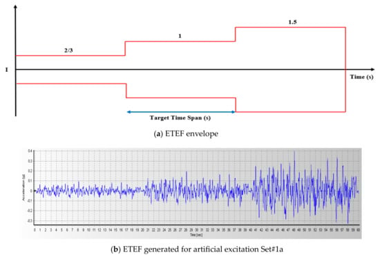 One important element of utilizing ETA is the generation of artificial excitation functions. In the first generation of artificial excitation functions, a random vibration modified through filtering in the frequency domain was made to be compatible with the geometric mean response spectrum of earthquake records. This stationary excitation function was then modified by multiplying it by a linear profile to intensify the amplitude of the excitation as a function of time [8]. The second generation of ETEF was developed based on matching a predefined response spectrum that grows with time, and these have been shown to produce noteworthy results [10]. The third generation of ETEFs was generated to address nonlinear response spectra analysis issues and optimize the implementation of the method, while the fourth generation of ETEFs used an exponentially increasing profile of excitation functions and was developed to include signal duration and the proper intensity [11].