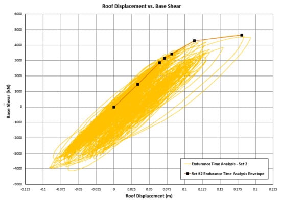 The locations of plastic hinges at the performance level of collapse prevention (CP) obtained using endurance time analysis are shown in Figure 11. Note, that the use of the ETA method with ETEF Set#2 successfully identifies the weak story in the structure.