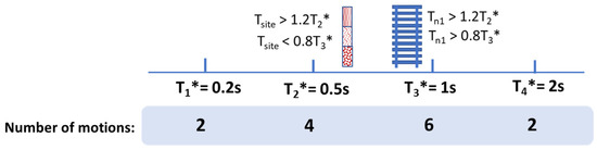 The design seismic hazard of 2% probability of exceedance in 50 years (2475 years return period earthquake), with a hazard value of 0.144 g, reverse/oblique fault, magnitude range of ±0.3 MW, Joyner–Boore distance range of ±30 km and VS,30 of 1000 m/s was specified when retrieving fourteen earthquake records from the PEER database. The selection scheme, which is presented diagrammatically in Figure 8 (showing the number of accelerograms for each reference period), was based on the recommendations in Ref. [10]. The listing of the selected earthquake records is presented in Table A1 in Appendix C. The bore log presented in Ref. [6] with a site period (Tsite) of 0.61 s was subject to soil column site response analysis using the online tool available with free access at “quakeadvice.org” [11]. Fourteen soil surface accelerograms, as shown in Figure A1, were generated using the online tool.