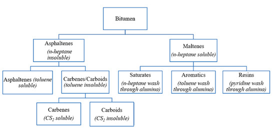 Grouping of asphalt molecules as per SARA method [17] (reprinted with permission from Ref. [17], open access).