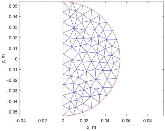 Due to symmetry, half of the section was considered, and the finite element mesh generated in the MATLAB environment using the initmesh() function is shown in Figure 3. The average mesh size of the finite element mesh in this figure is 0.01 m.