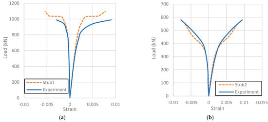 Load–strain relationship of (a) Stub 1 and (b) Stub 2.