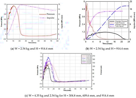 In this section, the results of tube pressure, chamber pressure, and LG window failure will be discussed in detail. Specific outcomes, such as the pressure, impulse, and displacement histories, will be examined.
