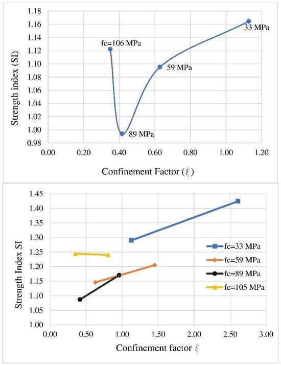 - The relationship between the strength index and confinement factor: The strength index (SI) can, in some cases, decrease with an increase in the confinement factor (ξ), and the higher compressive strength of concrete tends to result in lower SI values. It is important to understand why increased confinement does not always enhance concrete strength.