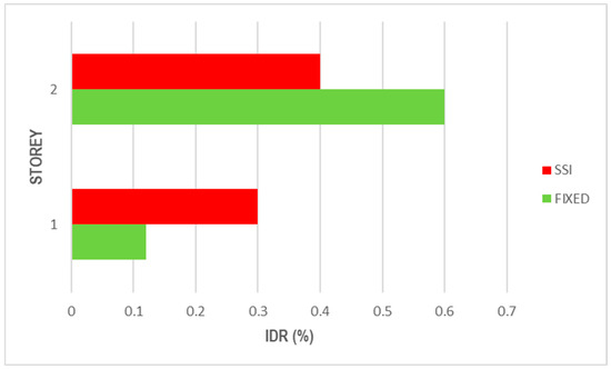 Interstorey drift ratios (IDRs) of 2-storey frames founded on stiff and compliant soil, respectively.