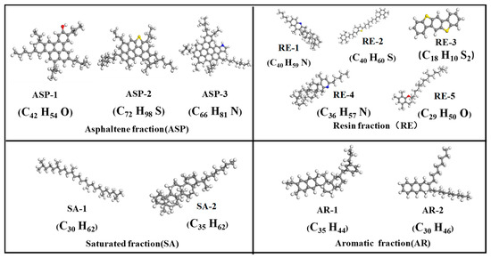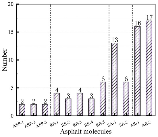- Li, D.D.; Greenfield, M.L. Chemical compositions of improved model asphalt systems for molecular simulations. Fuel 2014, 115, 347–356. [Google Scholar] [CrossRef]