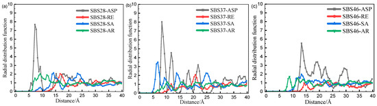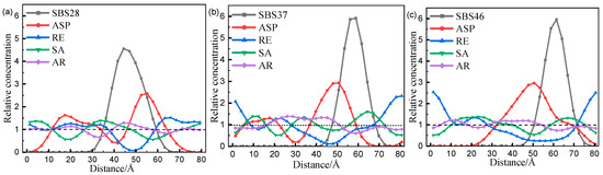 - SBS37 shows a fuller interaction with asphalt, not only adsorbing ASP, SA, and AR but also adsorbing RE more strongly than SBS28 and SBS46.
