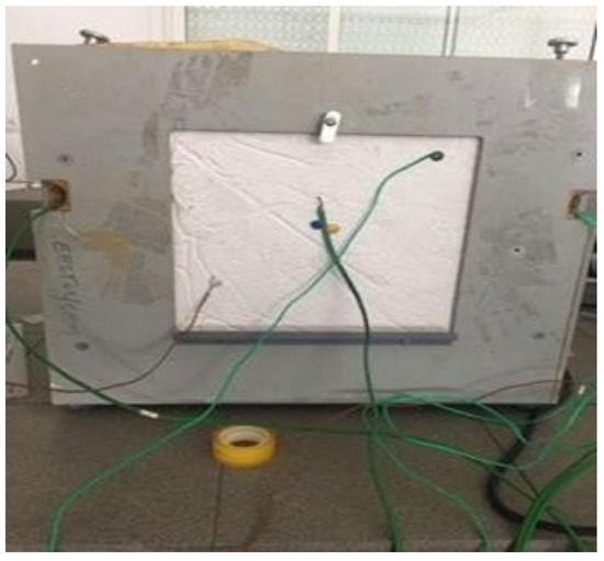 To determine other thermal properties, a thermal chamber was used. A thermal chamber is an experimental device that allows for the measurement of the amount of heat that passes through a material under steady-state conditions [17]. This device (Figure 2) is thermally insulated from the external environment, ensuring that heat transfer occurs solely through the material being tested. It measures thermal transition coefficients and the thermal conductivity of various materials. A Temperature Data Logger HD32.8.16 card is employed to record the temperature at different points on the material’s surface.