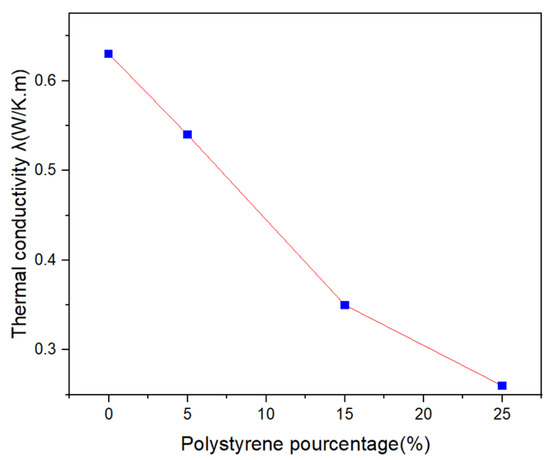 It is noticeable that thermal conductivity decreases as the percentage of polystyrene increases, which allows us to conclude that the smaller the amount of thermal conductivity, the more insulating the material is.