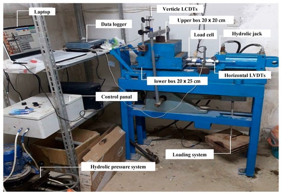 A locally manufactured large-size direct shear device consisting of a size box (20 × 20 × 10) cm (upper part) and a size box 20 cm × 25 cm × 10 cm (lower part) is utilized in this study. The lower part is designed to be greater than the upper part to ensure a consistent shearing zone during experimental modeling.