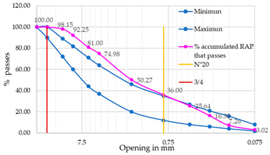 Granulometric distribution of RAP.