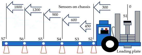 Sensor distribution from the loading plate in millimeters.