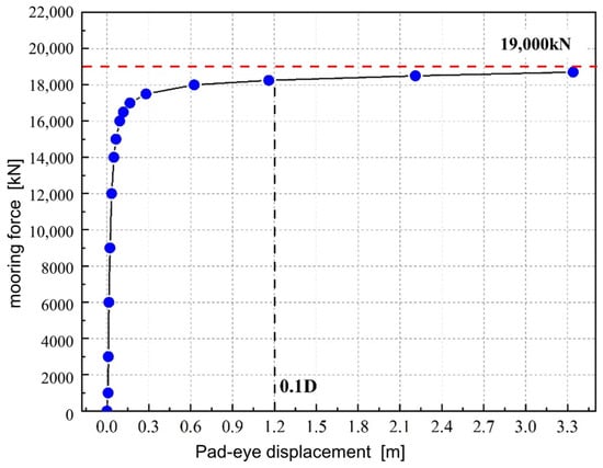 Load–displacement curve at pad-eye of suction anchor foundation.