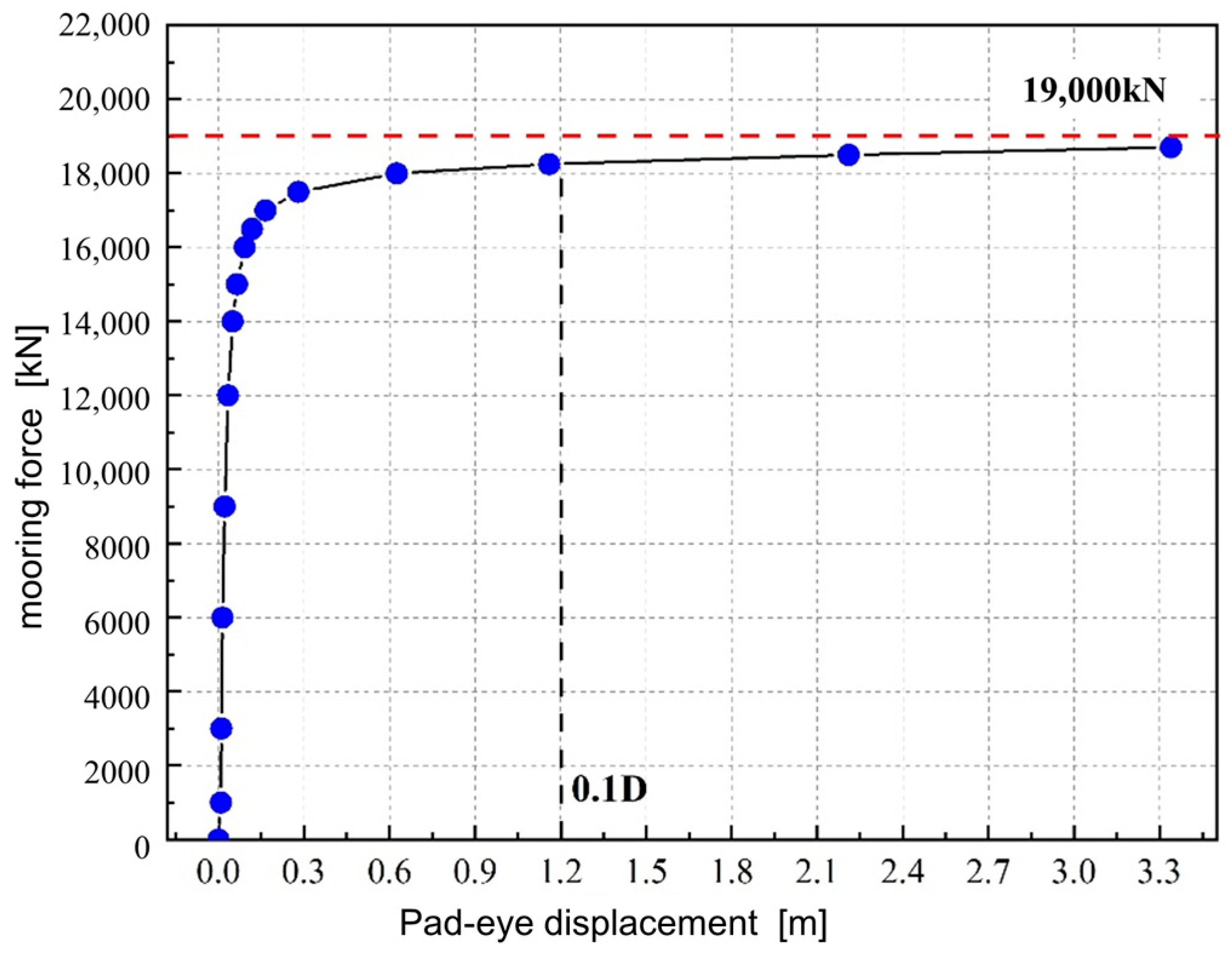 Figure 8. Load–displacement curve at pad-eye of suction anchor foundation.