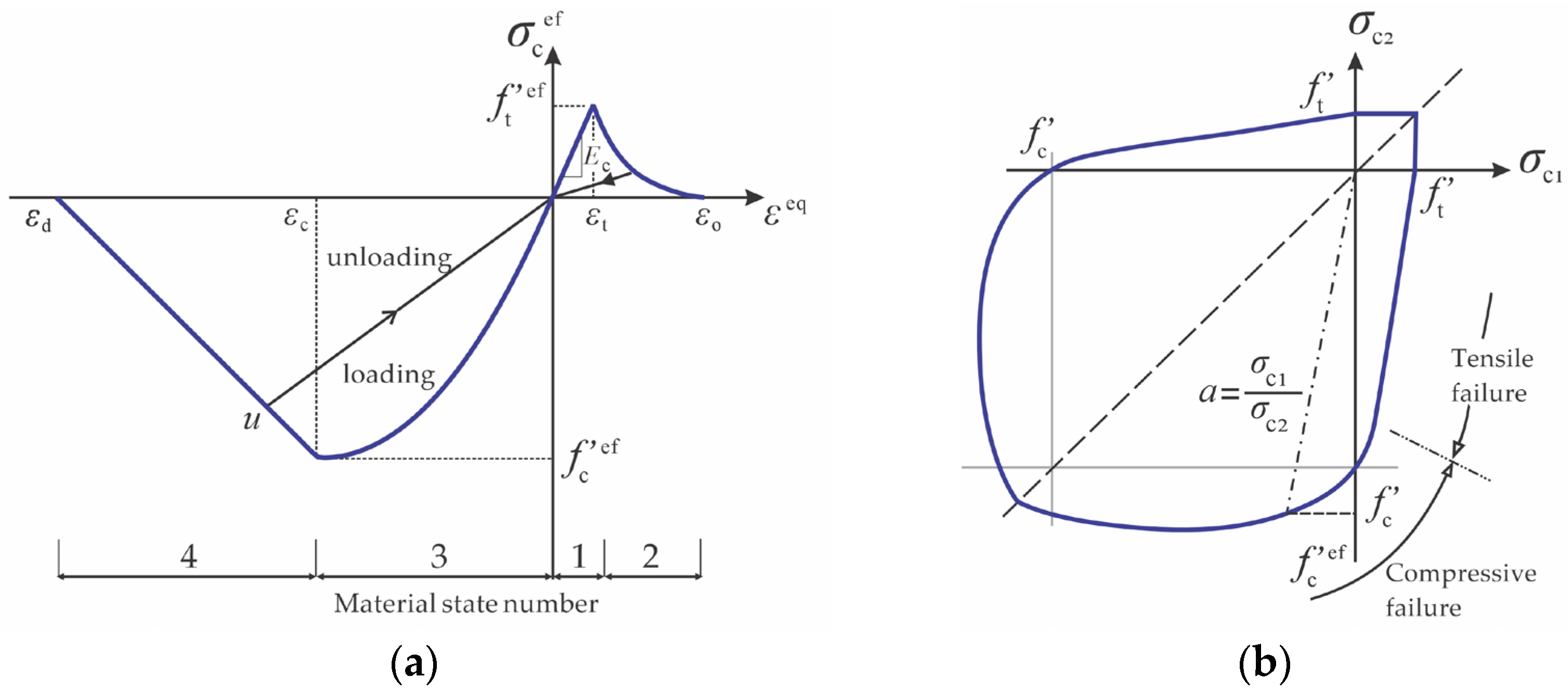 - Kupfer, H.; Hilsdorf, H.K.; Rüsch, H. Behavior of concrete under biaxial stresses. J. Proc. 1969, 66, 656–666. [Google Scholar] [CrossRef]