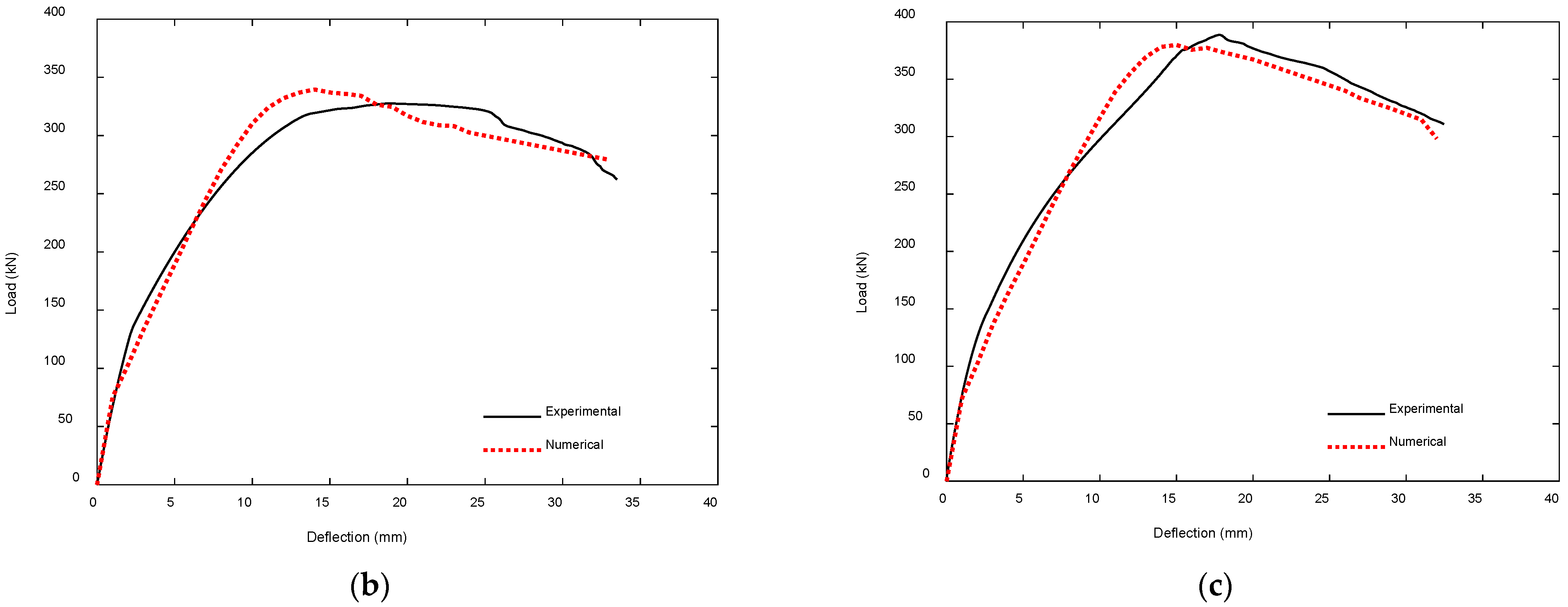 Numerical ultimate load, Pu-num (kN) | 175.12 | 339.63 | 379.88 |