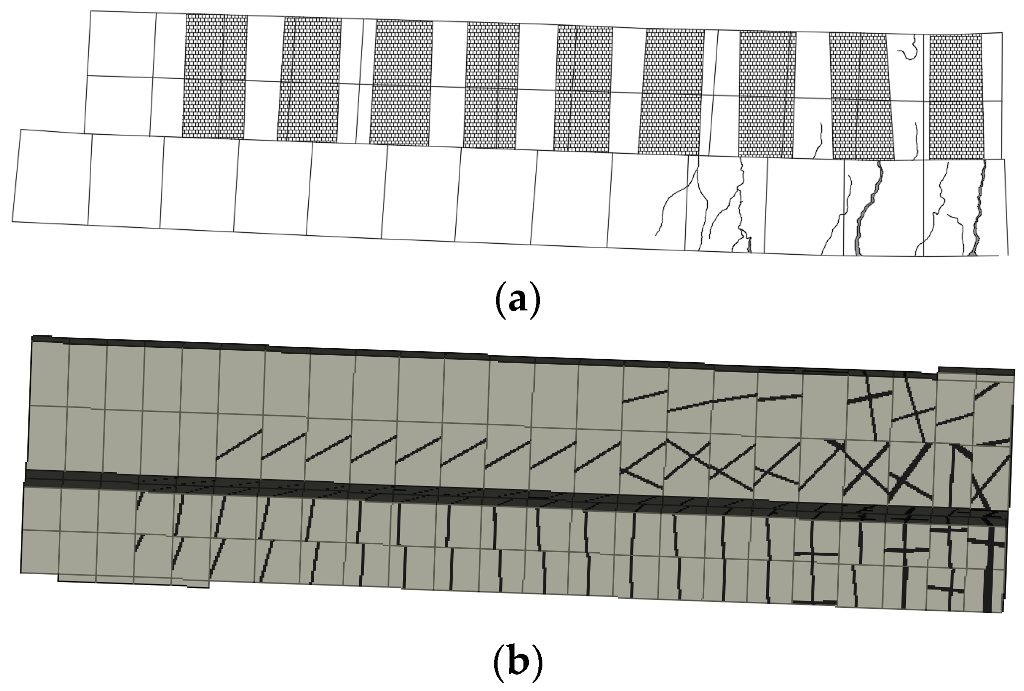 - Ke, Y.; Zhang, S.S.; Nie, X.F.; Yu, T.; Yang, Y.M.; Jedrzejko, M.J. Finite element modelling of RC beams strengthened in flexure with NSM FRP and anchored with FRP U-jackets. Compos. Struct. 2022, 282, 115104. [Google Scholar] [CrossRef]