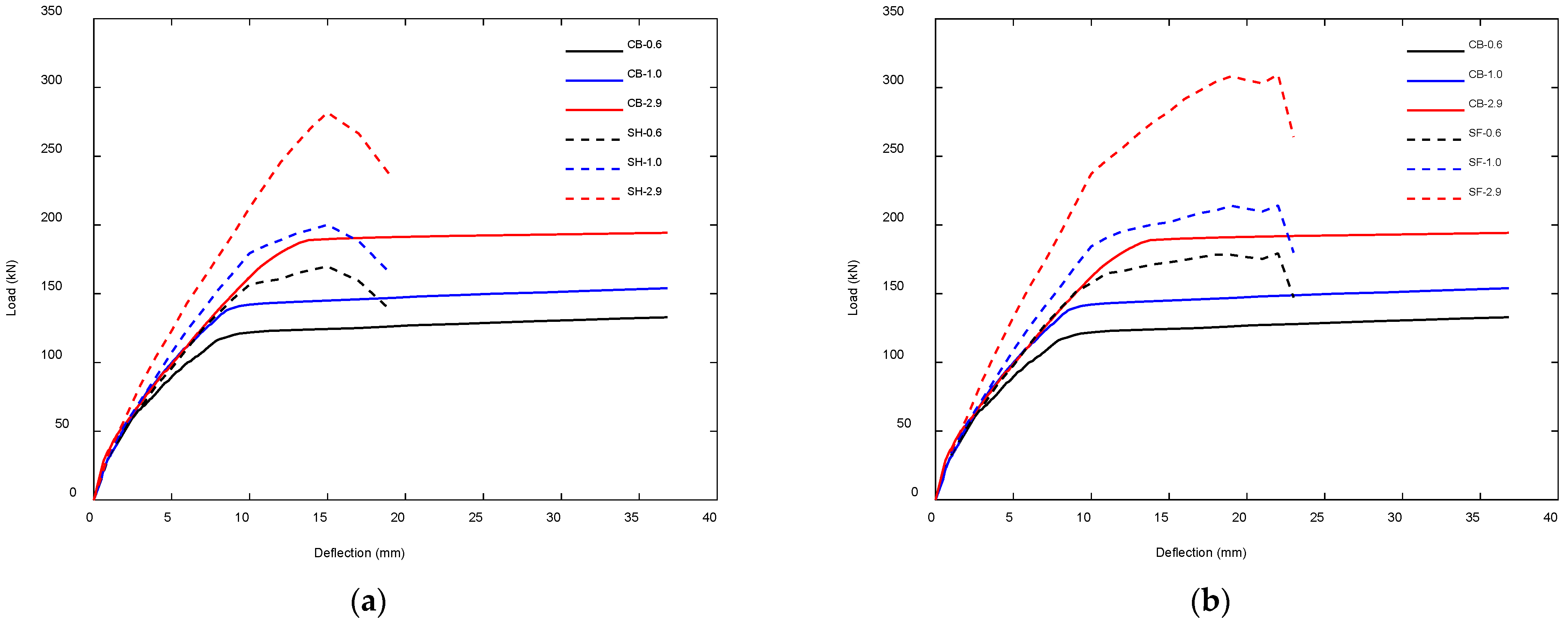 - Ashour, S.A. Effect of compressive strength and tensile reinforcement ratio on flexural behavior of high-strength concrete beams. Eng. Struc. 2000, 22, 413–423. [Google Scholar] [CrossRef]