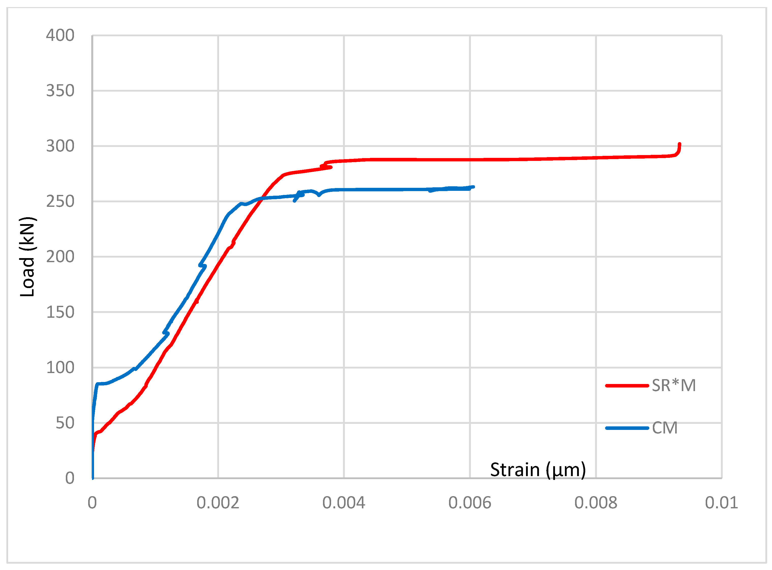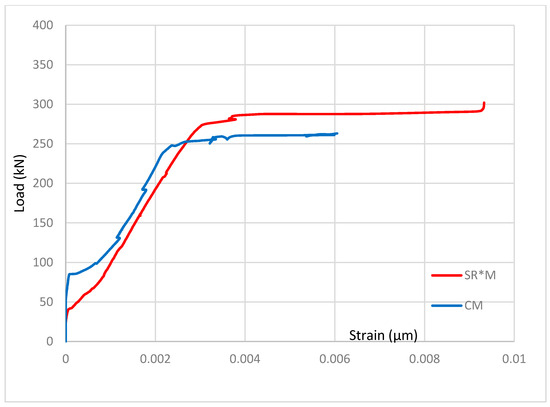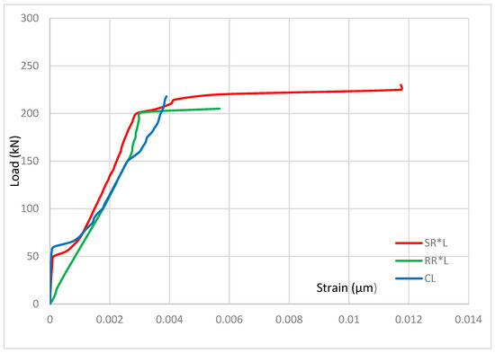 The absence of accurate strain data in the RR*M sample due to defective gauges limits direct comparisons for this particular case. However, the overall trend suggests that the presence of BFRP ropes enhances load-bearing capacity by redistributing stresses, mitigating excessive strain in the steel, and potentially improving ductility.