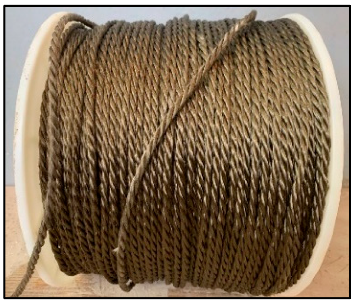 In this investigation, BFRP ropes were utilized, as depicted in Figure 1, to strengthen and rehabilitate the continuous RC beams. The supplier’s comprehensive specifications for BFRP ropes are delineated in Table 2.