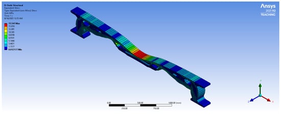 Equivalent von Mises stress distribution in the optimized bench.