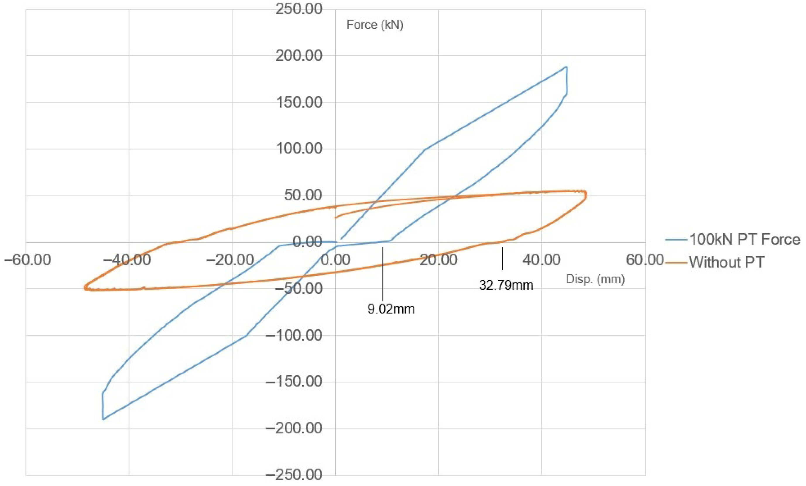 Theoretically, if the PT force is sufficiently high, it will provide sufficient separation such, that the positive and negative portions of the cycles completely recover, and there is still PT force reserved to pull the brace back to its center. The best plot to show this behavior is shown in