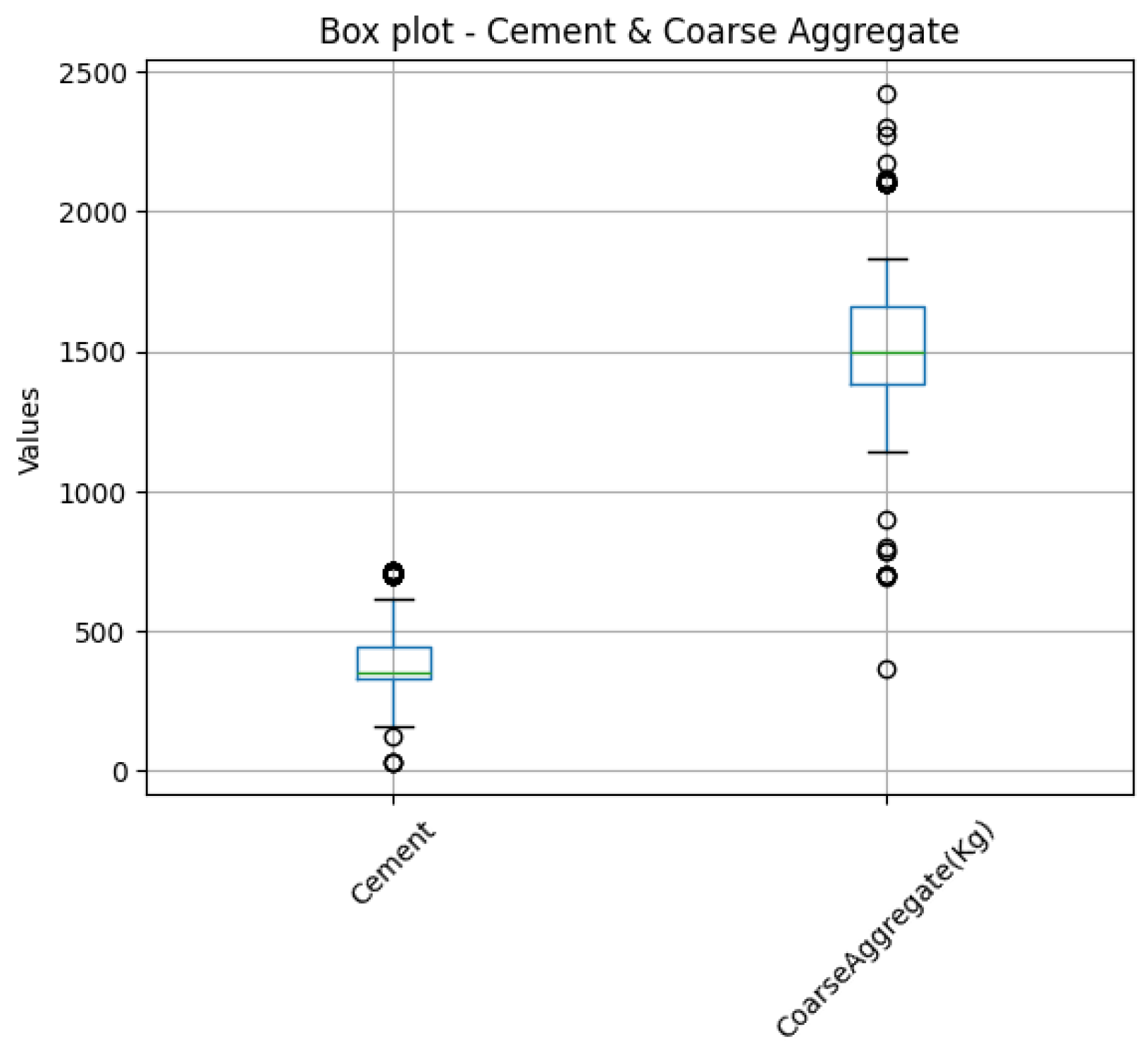Outlier detection was performed using the interquartile range (IQR) method and verified with box plots. Correlation analysis via heatmaps was used to guide feature selection. Less significant aggregate size categories were removed to improve model simplicity, following the observations of Sonebi et al. [