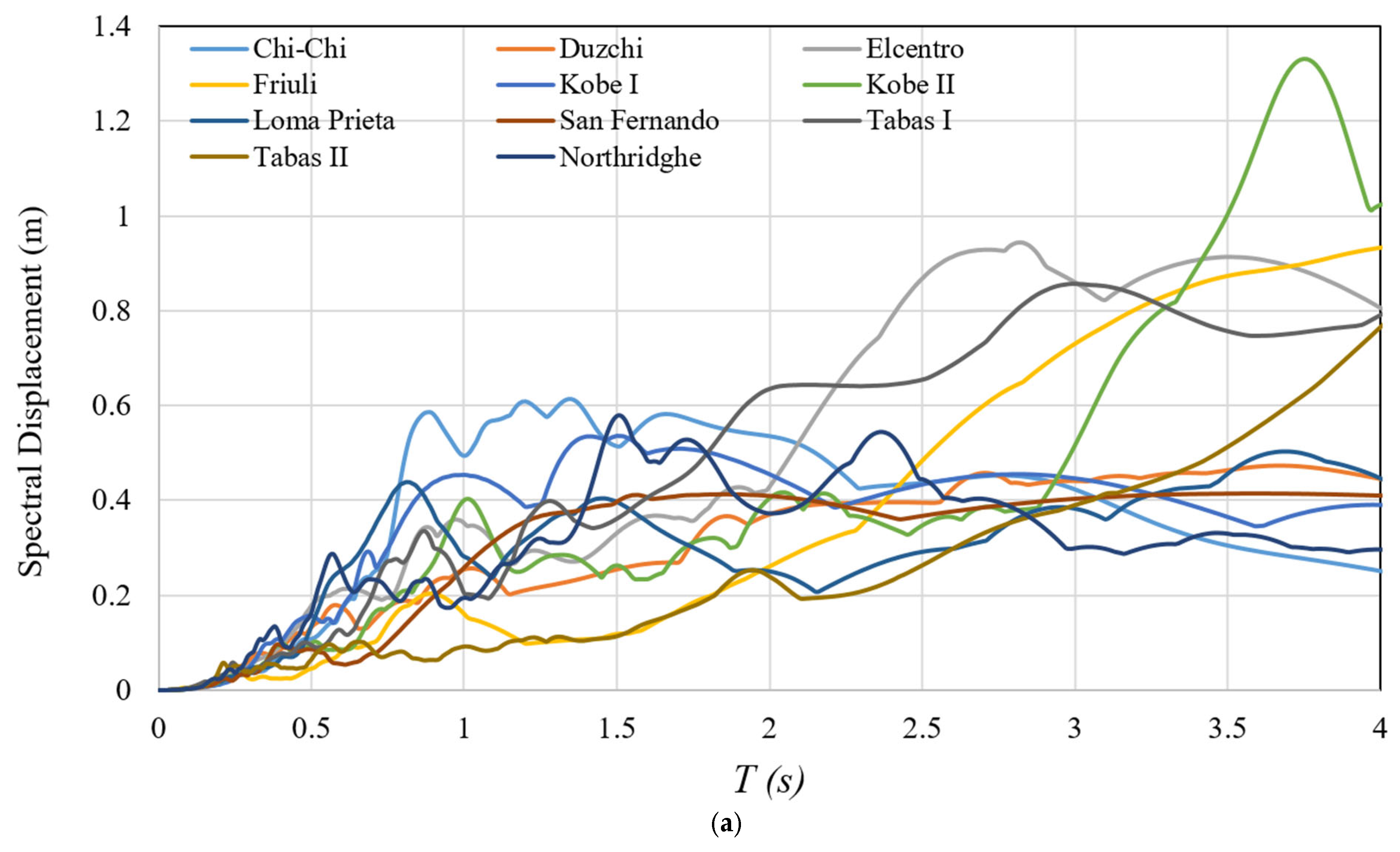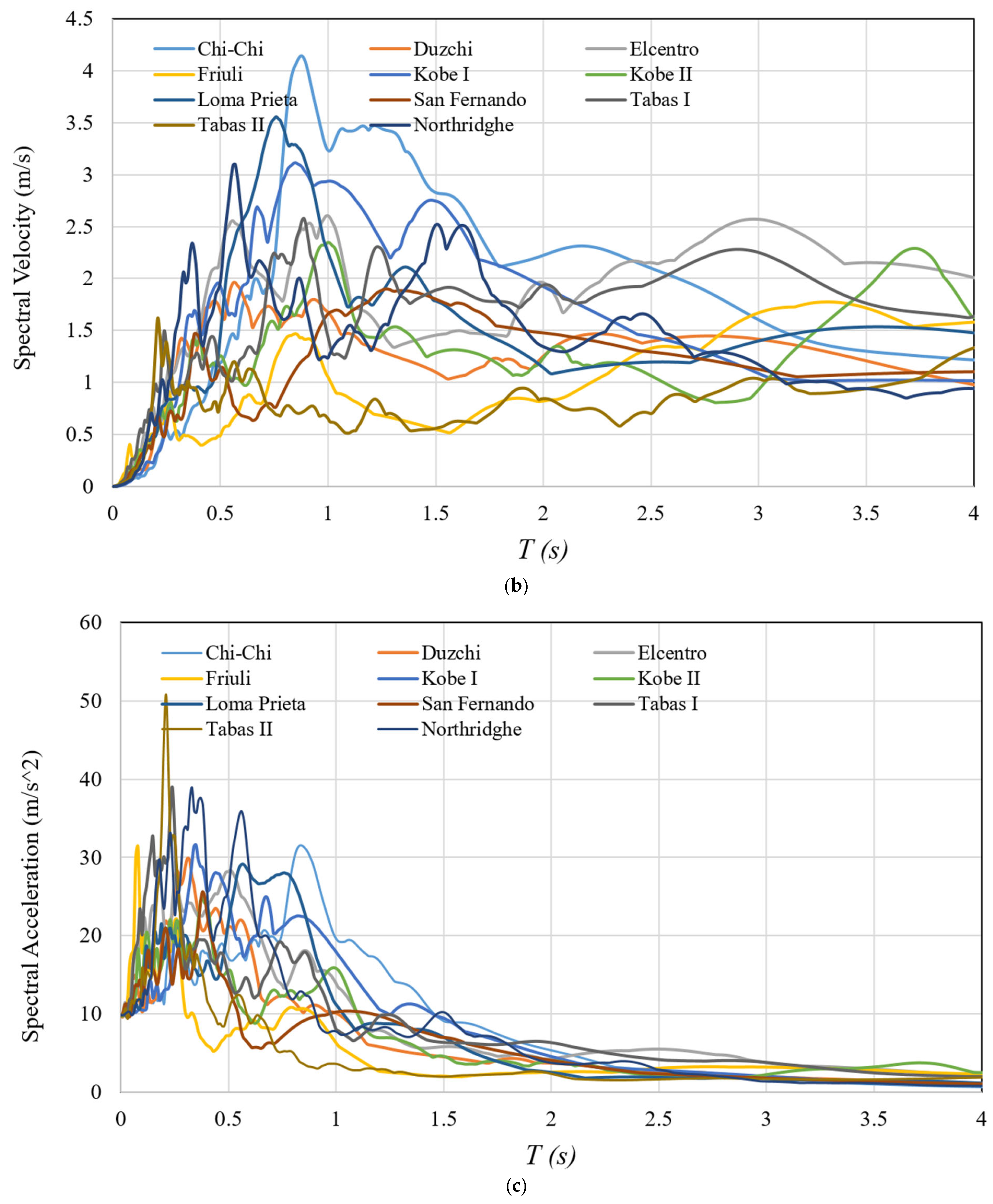 Figure 2. As observed, near-field events such as Loma Prieta (1989), Kobe I (1995), and Chi-Chi (1999) exhibit higher spectral velocity peaks.