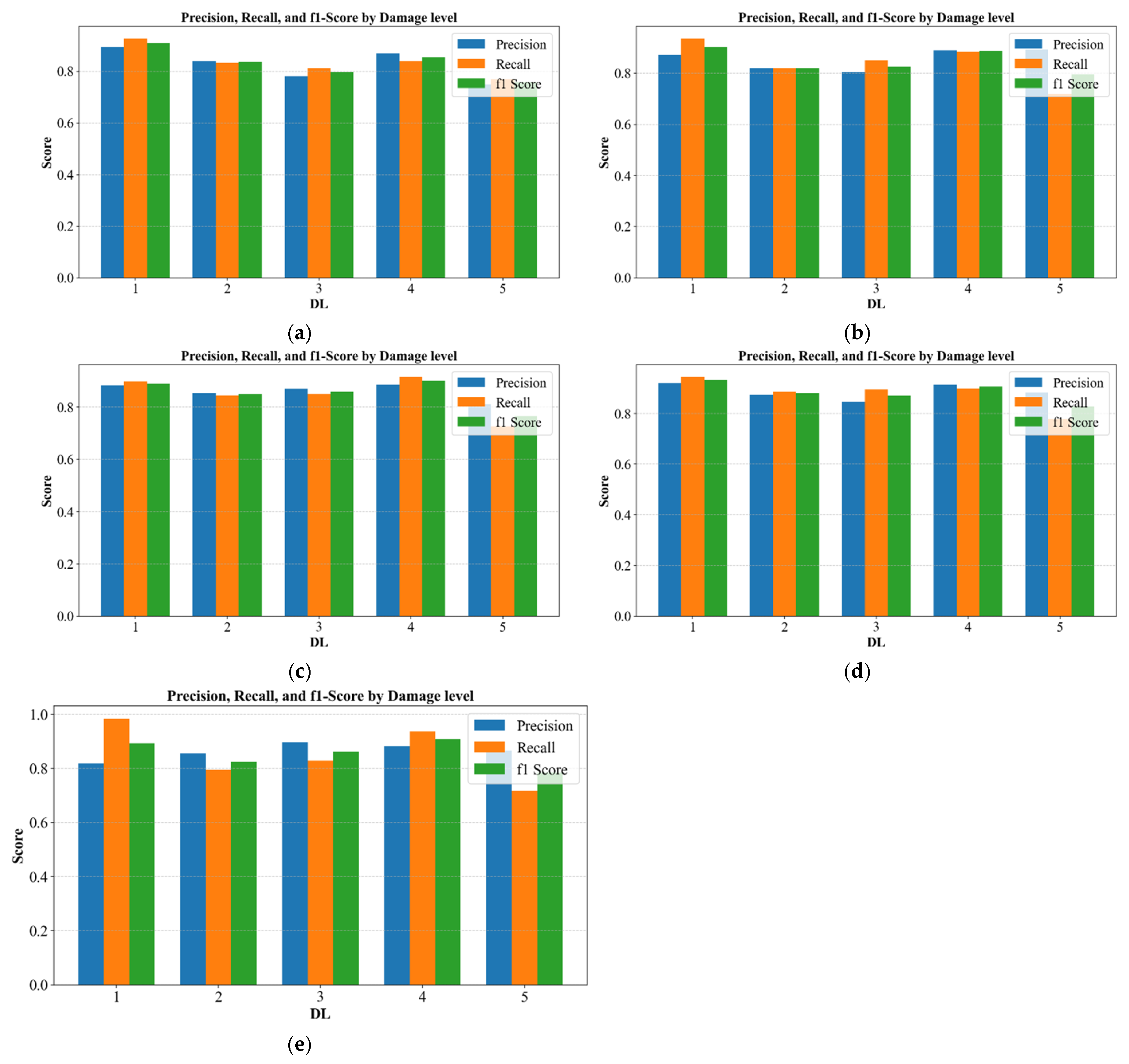 To mitigate potential bias, a stratified train–test split was adopted, ensuring that each damage level was proportionally represented in both subsets. Furthermore, class-wise performance metrics (Precision, Recall, and F1-score) were examined, which are presented in the next sections of this paper.