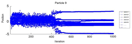 Figure 8 represents the change of the position of particle 9 in projection on the 31 parameters (or dimensions); dim1…dim31 represent the parameters of the NN (weight and bias).