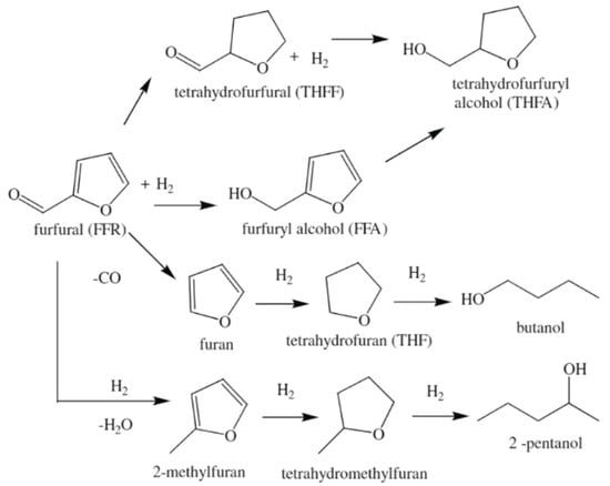 Reaction pathway for FFR hydrogenation. Adapted from [61] with permission of Elsevier, copyright 2009.