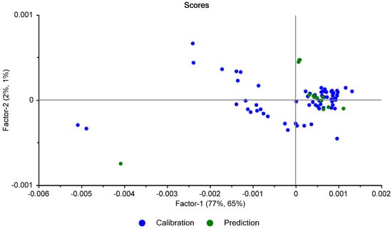 Scores plot of the calibration and test set spectra.