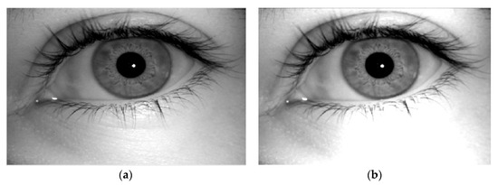 where w (s, t) is the weight, f (x + s, y + t) is the input for which x = 0, 1, 2…., m − 1 and y = 0, 1, 2…., n − 1 and g (x, y) are the output image. This will result in the image having better intensities in the iris portion than those that are shown in Figure 2. During the iris recognition process, the pre-processing steps can also be used again and again if they are required.