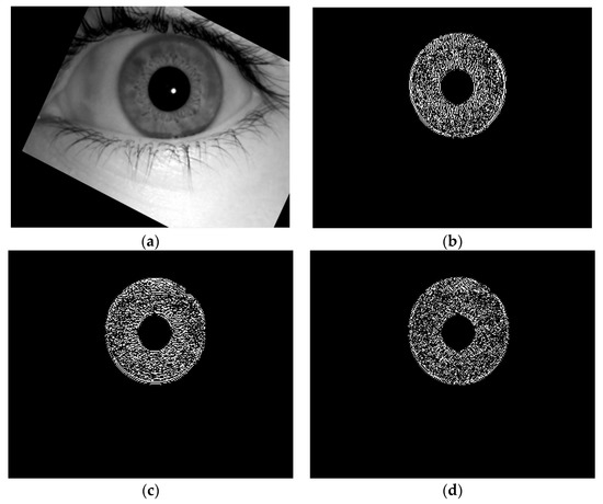 Zhu et al. used a multi-scale texture analysis for global feature extraction, 2D texture analysis for feature extraction and a weighted Euclidean distance classifier for iris matching [17]. Daouk et al. proposed the Hough transform and canny edge detector to detect the inner and outer boundaries of an iris [18]. Tan et al. proposed the iterative pulling and pushing method for the localization of the iris boundaries, and they used key local variations and ordinal measure encoding to represent the iris pattern [18,19,20,21]. Patil et al. proposed the lifting wavelet scheme for the iris features [22]. Sundaram et al. used the circular Hough transform for the iris localization, 2D Haar wavelet and the Grey Level Co-occurrence Matrix (GLCM) to describe the iris features and the Probabilistic Neural Network (PNN) for matching the computed iris features [23].