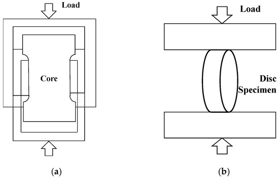 Schematic diagram of tensile test (a) for direct tensile, (b) for indirect tensile.