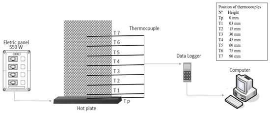 The setup comprises an electric panel, a hot plate, a cylindrical reactor, eight thermocouples, and a data logger. The reactor consisted of a perforated cylindrical structure made of steel, 80 mm in diameter (D) and 120 mm in high (L), controlled by the electric panel. The panel is set to achieve a power of 550 W, and this can approximately elevate the hot plate temperature to 350 °C. Preliminary experiments that do not consider the use of the electric panel demonstrate that results could be impacted. Therefore, it ensures that there were no significant variations in hot plate temperature throughout the experiment.
