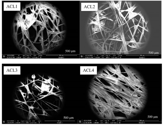 The surface morphology of each ACL was investigated using an FEI Quanta 250. The SEM analysis was operated at an accelerating potential of 10 kV. Before the analysis, the AC samples were mounted onto an aluminum stub using carbon tape.