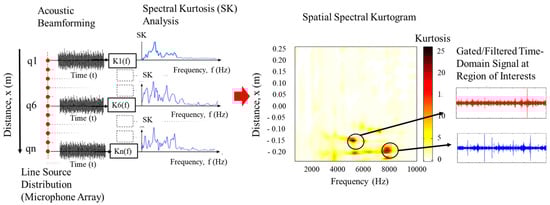 - Cardenas Cabada, E.; Leclere, Q.; Antoni, J.; Hamzaoui, N. Fault Detection in Rotating Ma-chines with Beamforming: Spatial Visualization of Diagnosis Features. Mech. Syst. Signal. Process. 2017, 97, 33–43. [Google Scholar] [CrossRef]