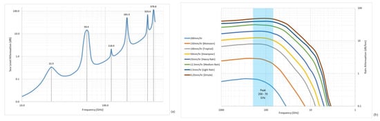 (a) Rain attenuation and (b) atmospheric and molecular absorption [12].