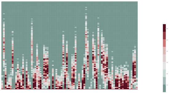 where denotes the n-th data example at the input, is the weight that links p-th unit from the former layer with the j-th unit in the i-th layer (current layer), and represents the corresponding activations in the previous layer . After the values of the influential connections are obtained for each neuron, the majority voting (MV) method [19,20] is applied to detect the most important connections for each neuron.