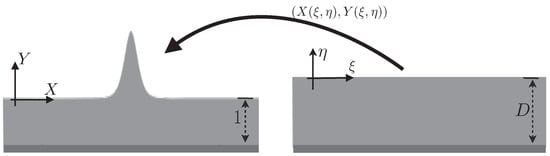 under which the strip is mapped onto the flow domain, as in Figure 1. The constant D will be determined so that the canonical and the physical domain have the same length. Since Z is taken to be conformal, thus analytical, X and Y are actually conjugate harmonic functions, whereas the mapping’s Jacobian is given by