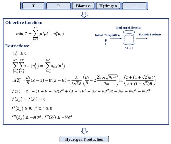 For the prediction of the biomass gasification process, the thermodynamic approach of minimization of Gibbs energy (minG) will be used. Any system reaches its thermodynamic equilibrium if the total Gibbs free energy has the smallest possible value, so this objective function is widely applied to verify processes in the equilibrium condition [24].