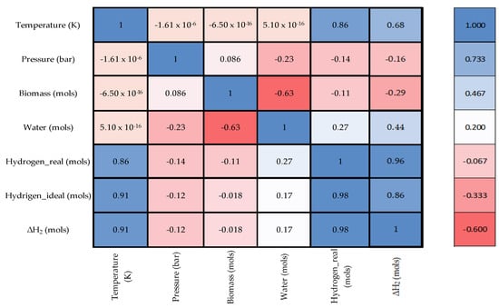 Considering that the Gibbs energy minimization methodology with the aid of the Peng–Robinson cubic adjusted well the experimental data of Basu [39], additional data were generated using different conditions of pressure, temperature, and biomass compositions in the feed. Figure 4 represents the described data set expansion procedure.