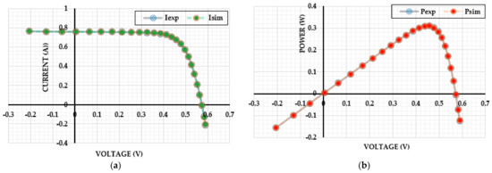 Figure 13 also depicts the PVDD model’s actual and projected P-V and I-V properties. The data generated by the proposed ASABA technique generally coincided with the experimental data, suggesting that the proposed ASABA methodology efficiently extracts the needed PV parameters.