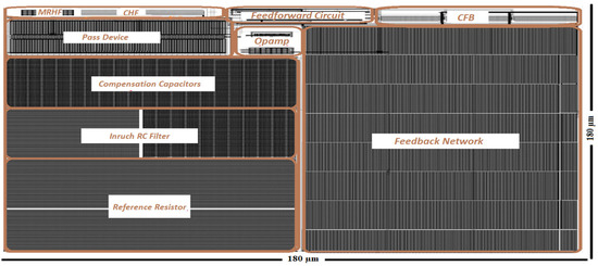 - Hammam, H.H.; Omran, H.A.; Ibrahim, S.A. Ultra-Low-Power Low Drop-Out (LDO) Voltage Regulator with Improved Power Supply Rejection. In Proceedings of the 2021 38th National Radio Science Conference (NRSC), Mansoura, Egypt, 27–29 July 2021. [Google Scholar]