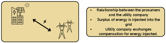 Net-metering: In this model (Figure 2), an arrangement is made between the electric company and the prosumers and customers under which energy is provided to them by the electric company if needed. An additional component of this arrangement is the option for the prosumer to sell excess energy generated by their photovoltaics back to the utility company for an agreed rate.